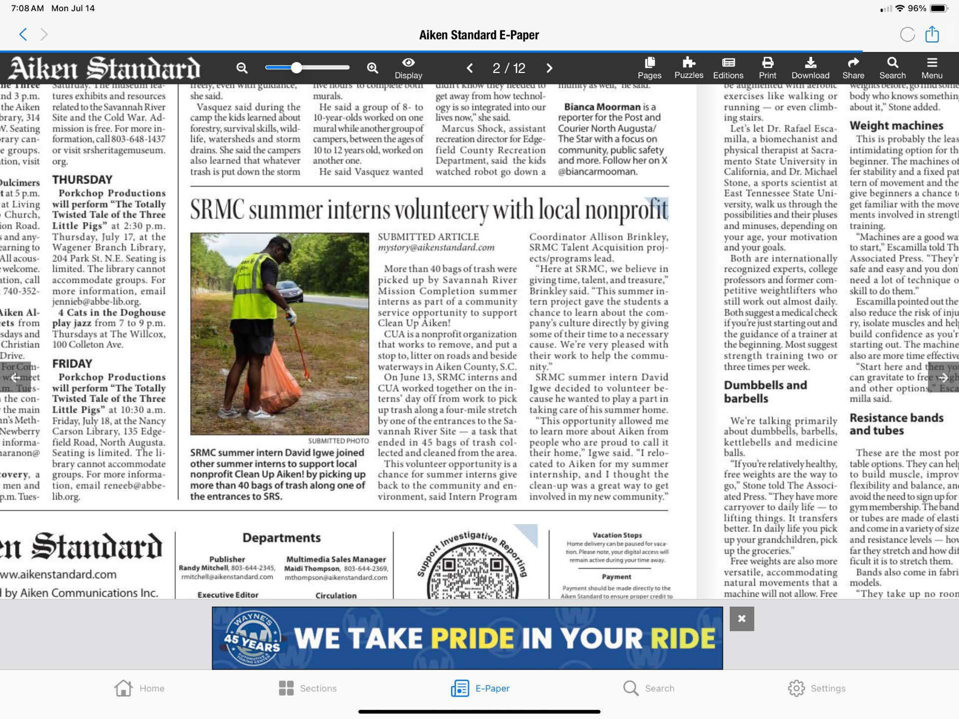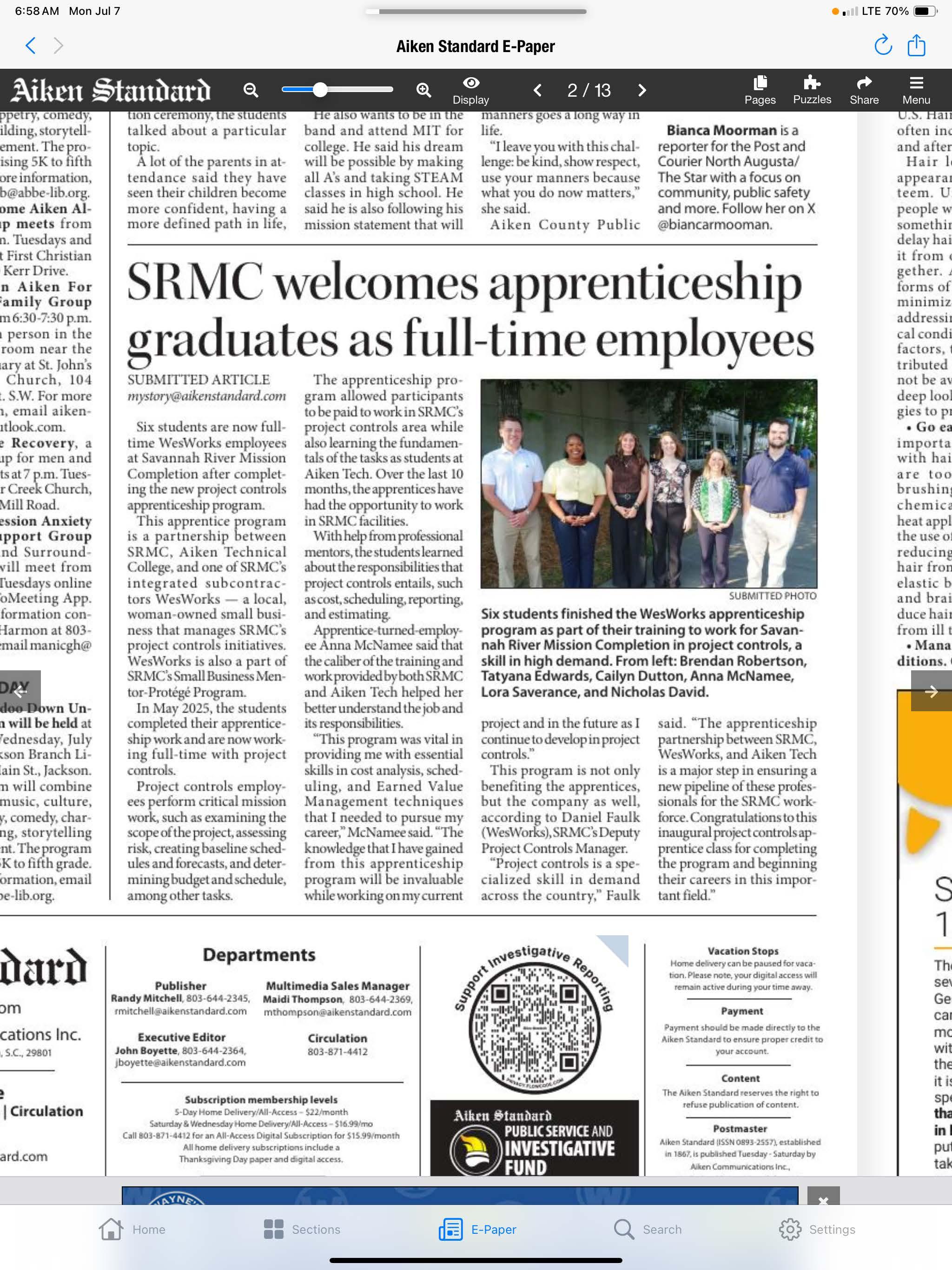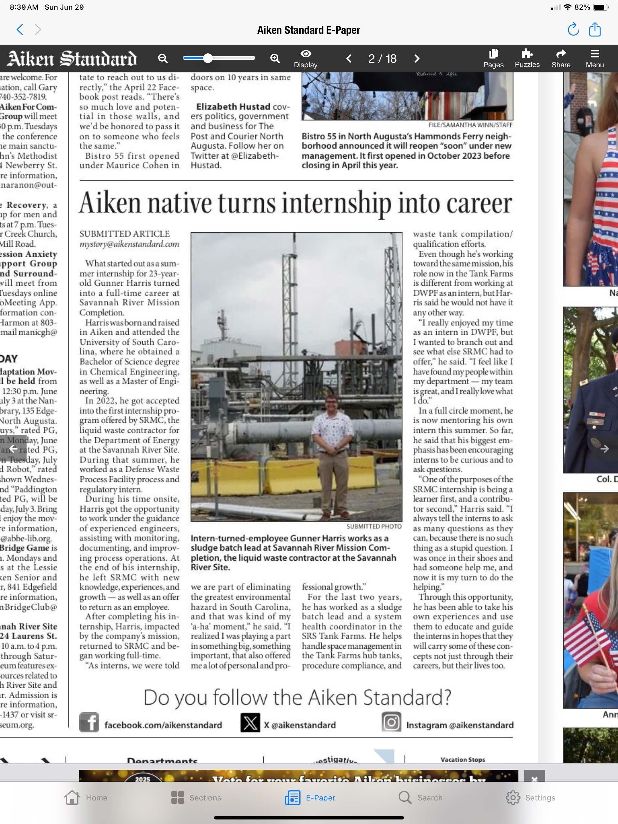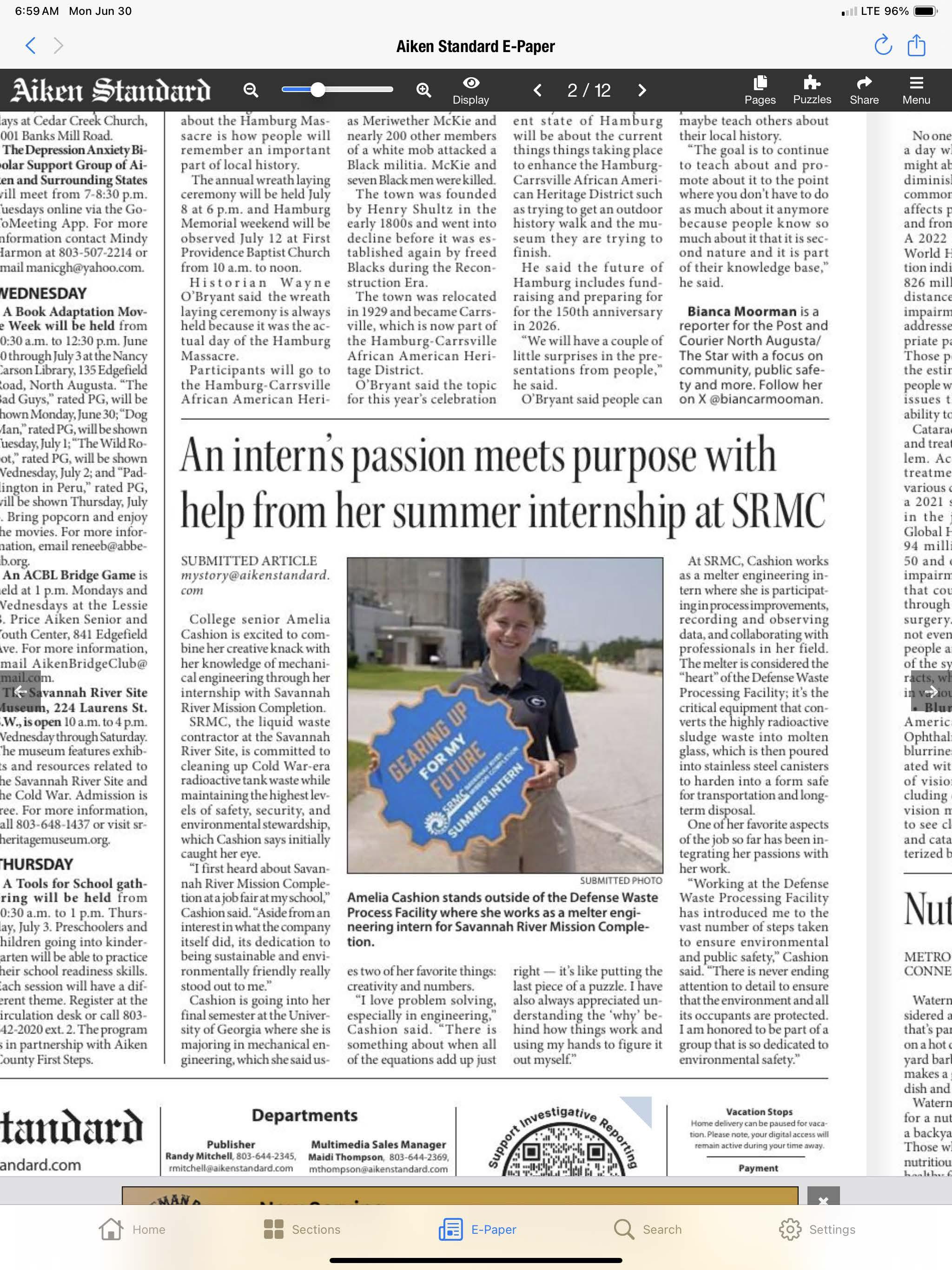 Aside from the SRMC website, some of my articles were submitted and featured in the Aiken Standard newspaper.